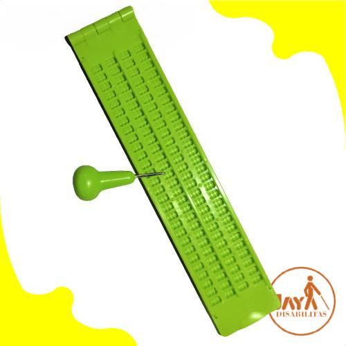 2. Reglet adalah sebuah alat bantu tulis bagi penderita tunanetra yang digunakan untuk menulis huruf Braille. Alat ini terdiri dari dua plat yang dijepit oleh engsel, di mana plat atas memiliki lubang tembus sebagai panduan dan plat bawah berfungsi sebagai cetakan titik-titik timbul yang akan membentuk pola Braille ketika kertas ditekan menggunakan stylus (alat seperti paku).