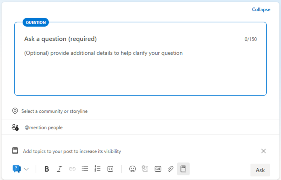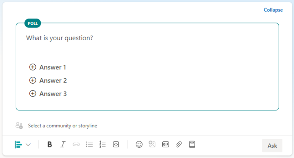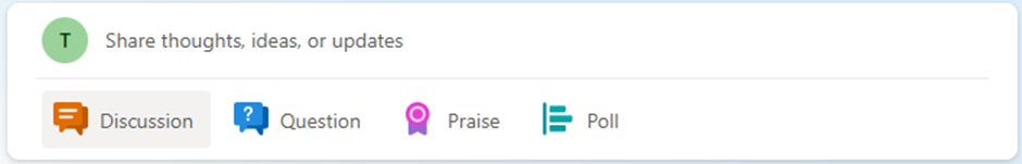 - Pada menu tersebut terdapat kolom Discussion, Question, Praise, Poll.
