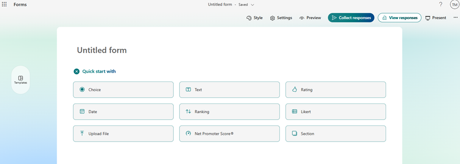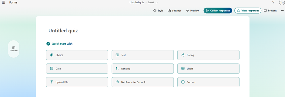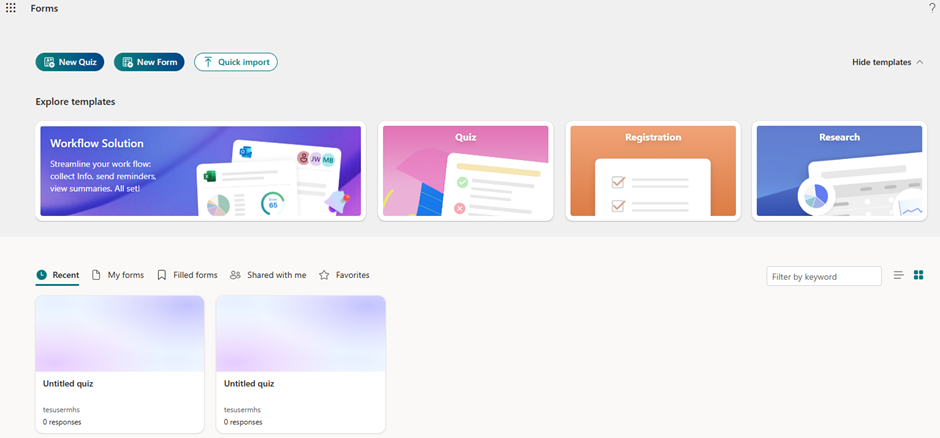 - Pada tampilan halaman berikutnya anda dapat membuat New Quiz, New Form ataupun Quick Import.