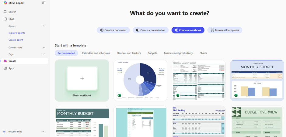 - Untuk membuat buku kerja klik Create > Create a workbook.