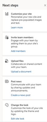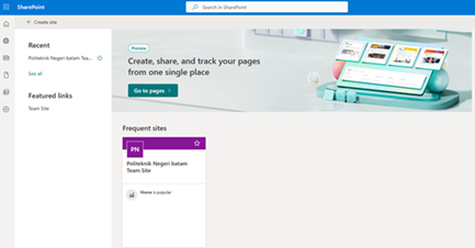 - Dalam demo ini kami menggunakan Team Site, untuk tampilan pada menu dapat menggunakan tampian dari Microsoft maupun dari anda, dengan tampilan sebagai berikut.