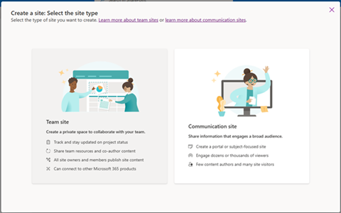 - Team Site dan Comunication Site di SharePoint memiliki tujuan yang berbeda. Team Site dirancang untuk kolaborasi internal dalam tim, sementara Comunication Site digunakan untuk menyebarkan informasi ke audiens yang lebih luas. Berikut adalah perbedaan utama antara keduanya: